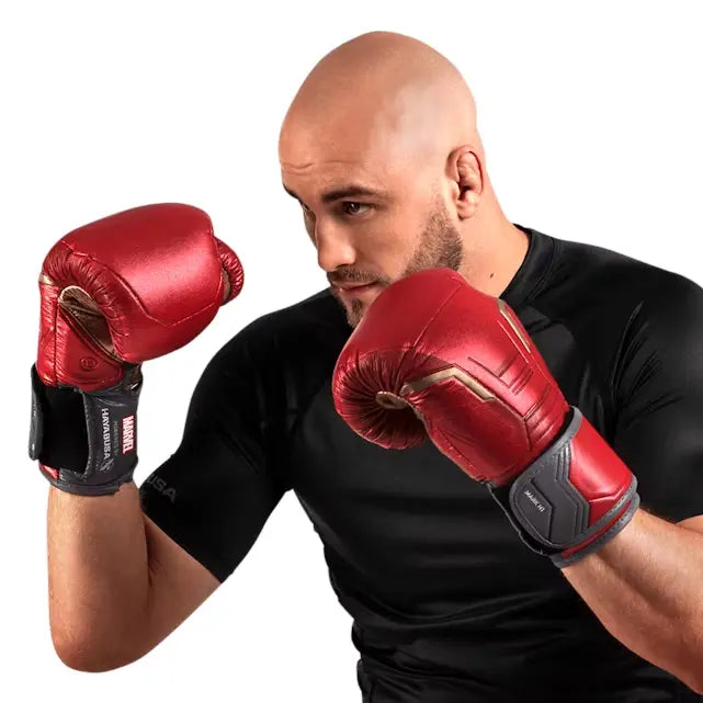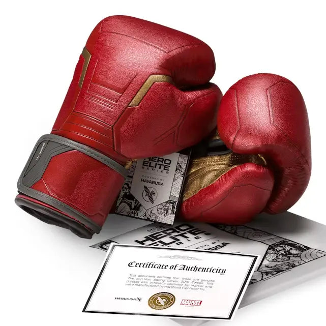 Met de Hayabusa Marvel Iron Man Bokshandschoenen geef je elke training een technologische voorsprong. Geïnspireerd op het iconische harnas van Tony Stark, combineren deze bokshandschoenen geavanceerde bescherming met een futuristisch rood-goud design. Perfect voor sporters die op zoek zijn naar prestaties én uitstraling binnen boksen, kickboksen, MMA of muay thai.