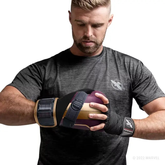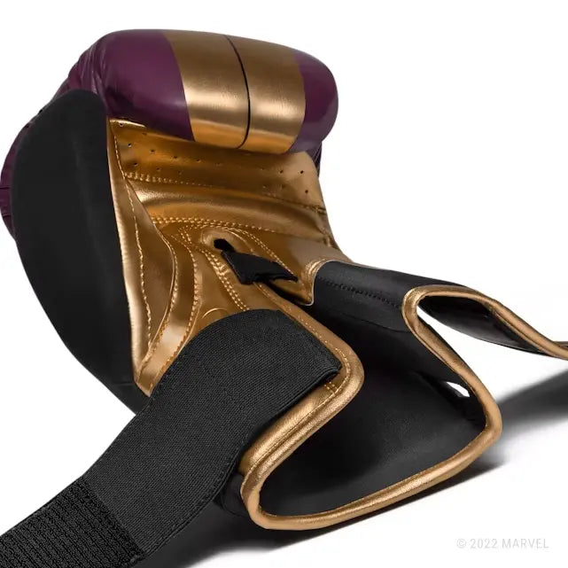 De Hayabusa Marvel Batroc Bokshandschoenen Paars/Goud combineren geavanceerde technologie met een uniek design geïnspireerd op Marvel's Batroc. Deze handschoenen zijn ontworpen voor boksen, kickboksen, MMA en muay thai, en bieden zowel stijl als functionaliteit voor de serieuze sporter.