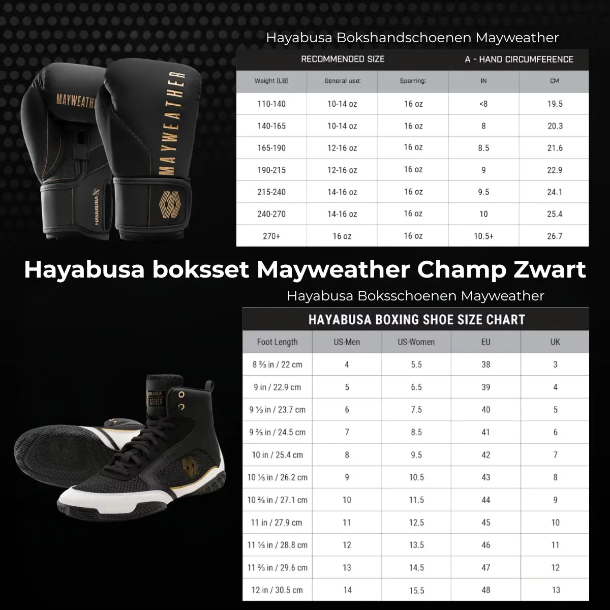 De Hayabusa Boksset Mayweather Champ Zwart/Goud is geschikt voor: