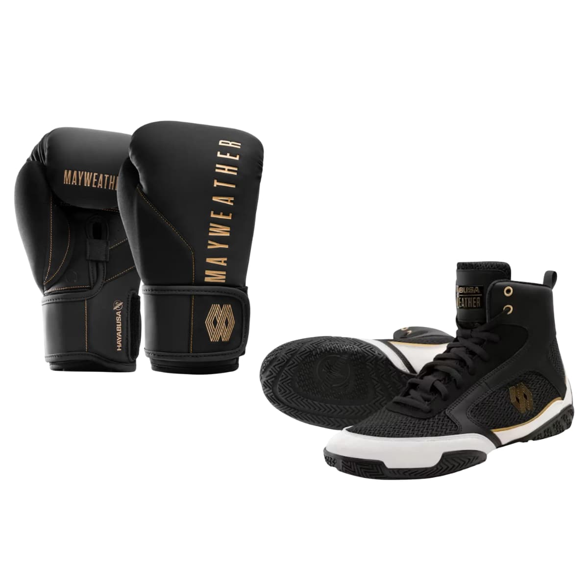 De Hayabusa Boksset Mayweather Champ Zwart/Goud combineert de iconische Mayweather‑stijl met topkwaliteit prestaties. Deze set bevat twee essentiële onderdelen voor iedere bokser: bokshandschoenen en boksschoenen, perfect op elkaar afgestemd in kleur, pasvorm en functionaliteit. Of je nu werkt op pads, zak of bezig bent met footwork, deze set levert comfort, grip en beschermin, in stijl.