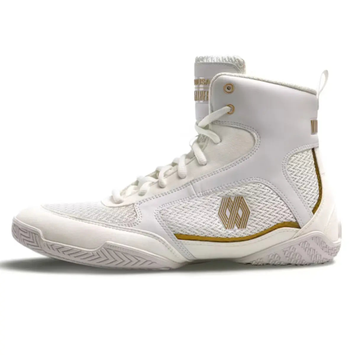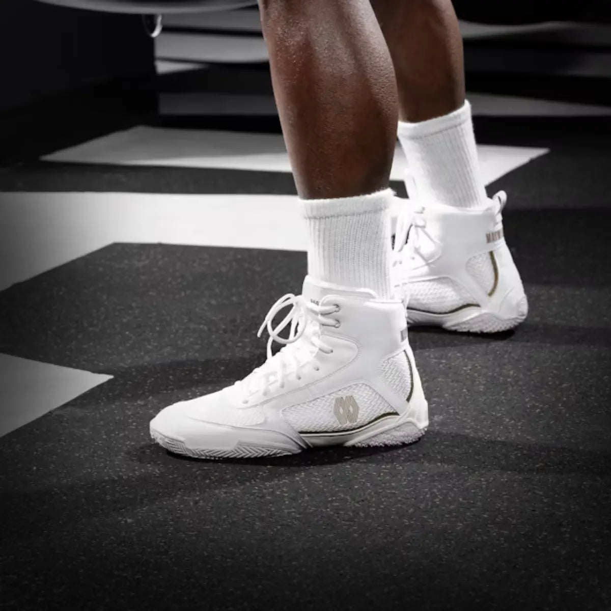 De Hayabusa Boksschoenen Mayweather Champ Wit/Goud combineren een professionele uitstraling met prestatiegerichte eigenschappen. Van de zool tot de bovenkant is elk detail gericht op snelheid, ondersteuning en duurzaamheid.