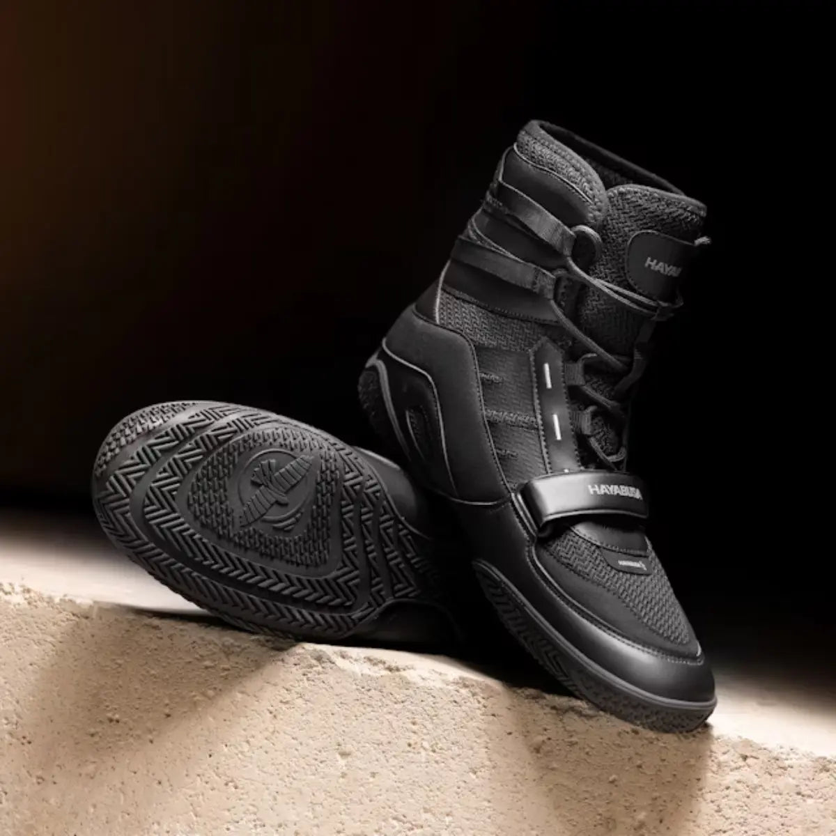 De neutrale zwarte kleur maakt deze boksschoenen geschikt voor iedere vechter, ongeacht stijl of uitrusting. Ze passen bij elke outfit, van klassieke zwarte shorts tot kleurrijke performancewear. Het subtiele Hayabusa-logo en de strakke lijnen zorgen voor een professionele, no-nonsense uitstraling die past bij serieuze sporters.