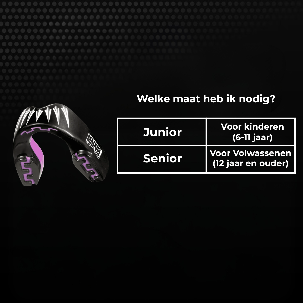 A good mouthguard requires good maintenance. The SafeJawz Marvel Black Panther Mouthguard is easy to clean. Rinse the mouthguard with cold water after each workout and use a soft toothbrush to remove stains and bacteria. Store it in a ventilated box for a long life. Avoid heat influence, such as direct sunlight, to prevent deformation. This ensures that your mouthguard always remains in top condition.