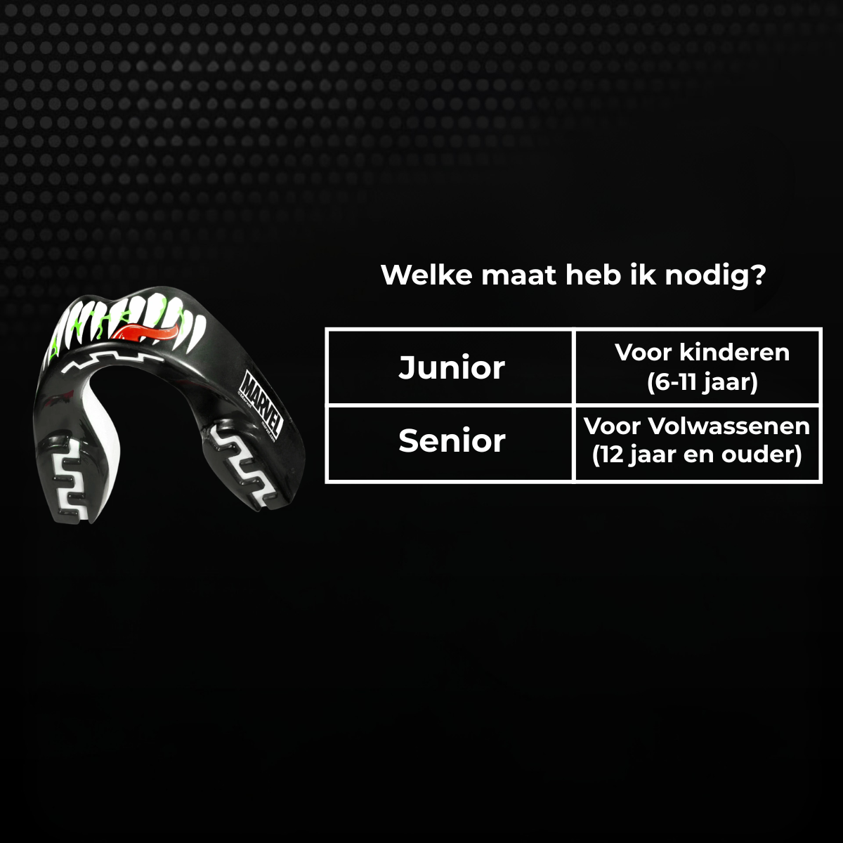 The mouthguard is not only designed for protection, but also for ease of use. The SafeJawz Marvel Series Venom Mouthguard features breathing channels that promote optimal airflow. This ensures that you can breathe freely, even during the most intense moments of your training or competition. In addition, you can maintain clear communication with your teammates, which is essential during sparring sessions.
